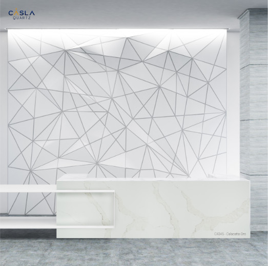 Đá thạch anh nhân tạo cao cấp Oro ốp bàn lễ tân tiền sảnh rất sang trọng